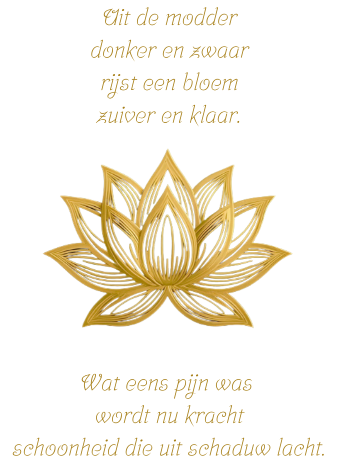 Liefdevolle aandacht voor wat in jou leeft, creëert ruimte voor groei en transformatie. Zoals de lotusbloem uit de modder groeit en zich laag voor laag opent, zo kan therapie een weg zijn van schaduw naar licht.